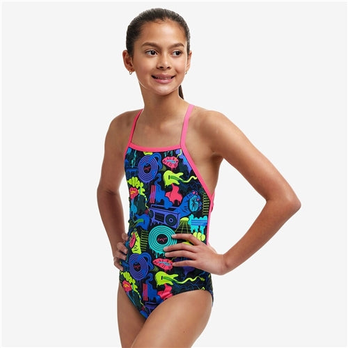 You’ll be sure to get noticed on pool deck in our strappiest one piece yet! Single strap binds that criss cross down your back with a moderately high cut leg.
